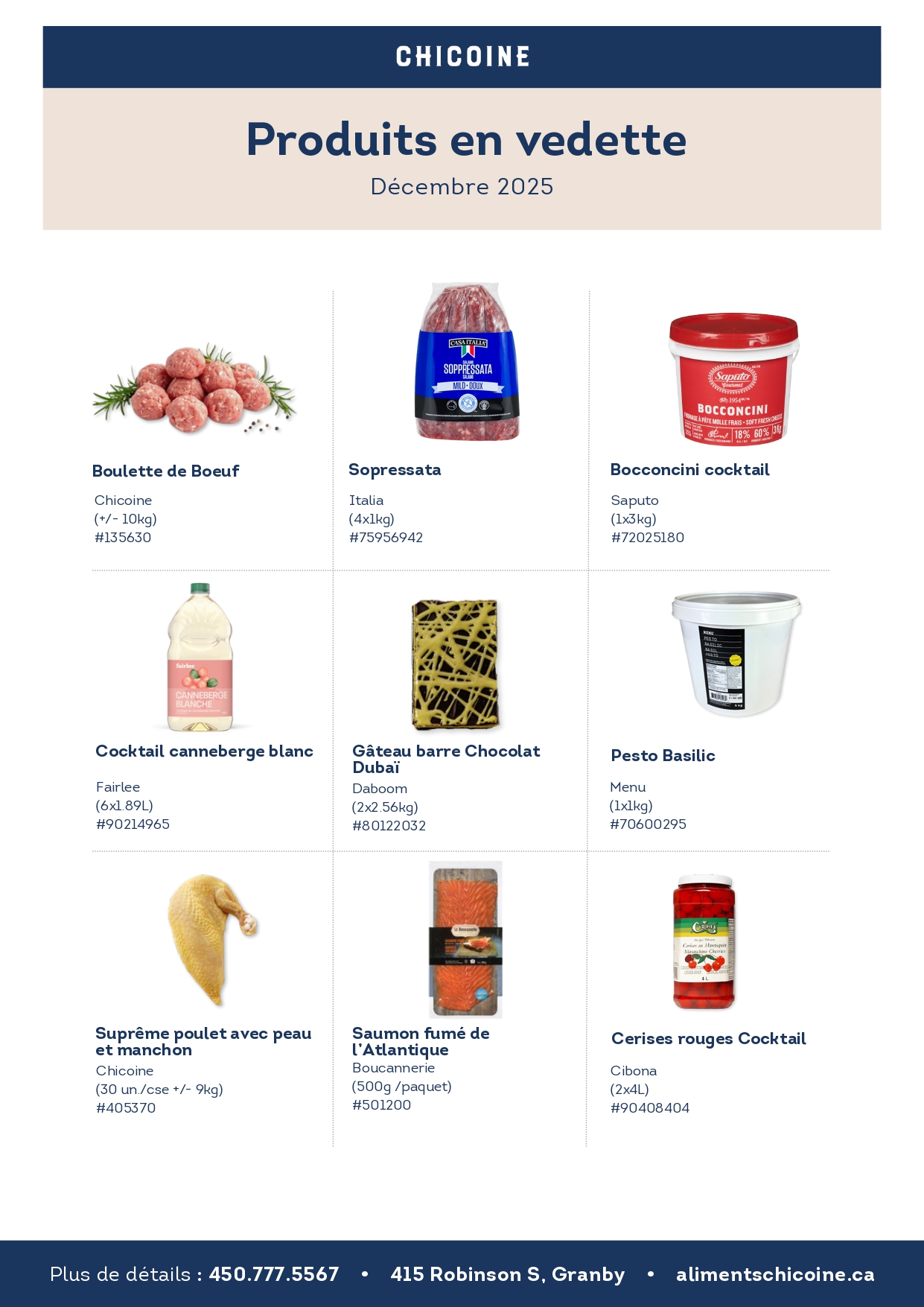 Fondé en 1979 par Guy Chicoine, Aliments Chicoine est devenu un acteur majeur de la distribution alimentaire et de la découpe de viandes sur mesure.